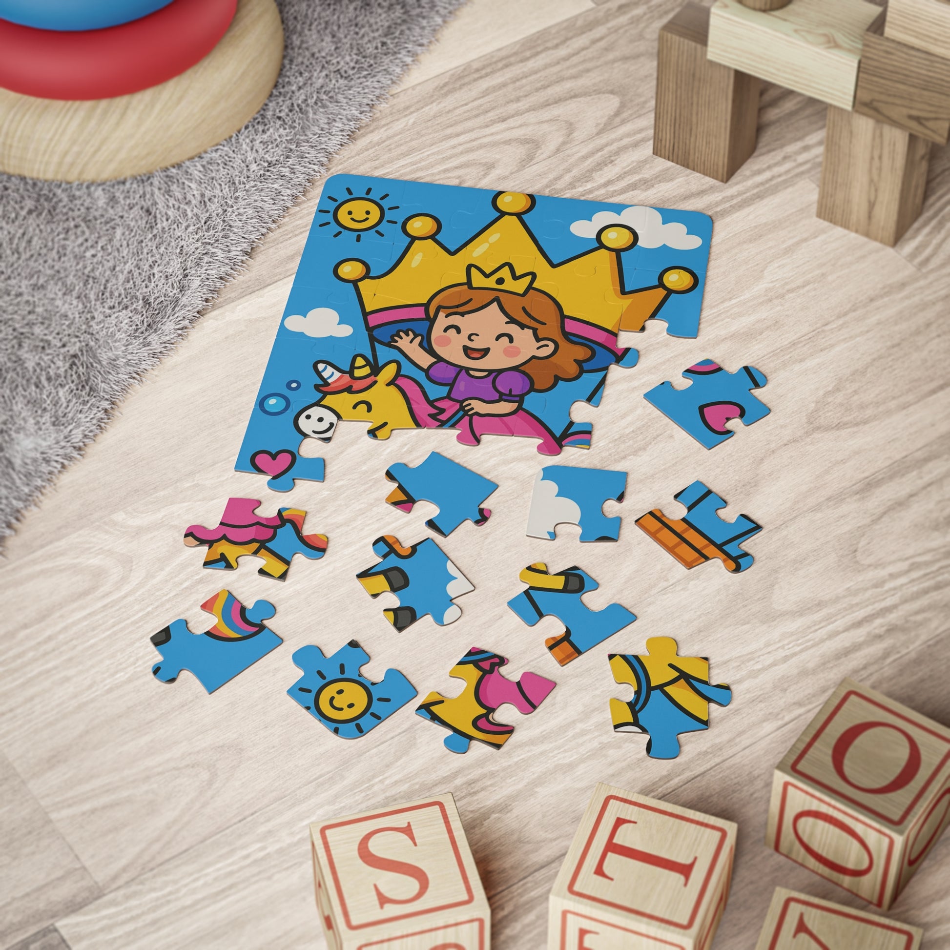 Introduce your little ones to the joy of puzzles with this engaging Kids' Puzzle. Designed especially for children, this 30-piece puzzle features delightful, vibrant images that captivate young minds. The friendly princess and her unicorn create a magical atmosphere that encourages imaginative play and learning. Perfect for playdates, family gatherings, or quiet afternoons at home, this puzzle nurtures problem-solving skills and hand-eye coordination in a fun and colorful way.